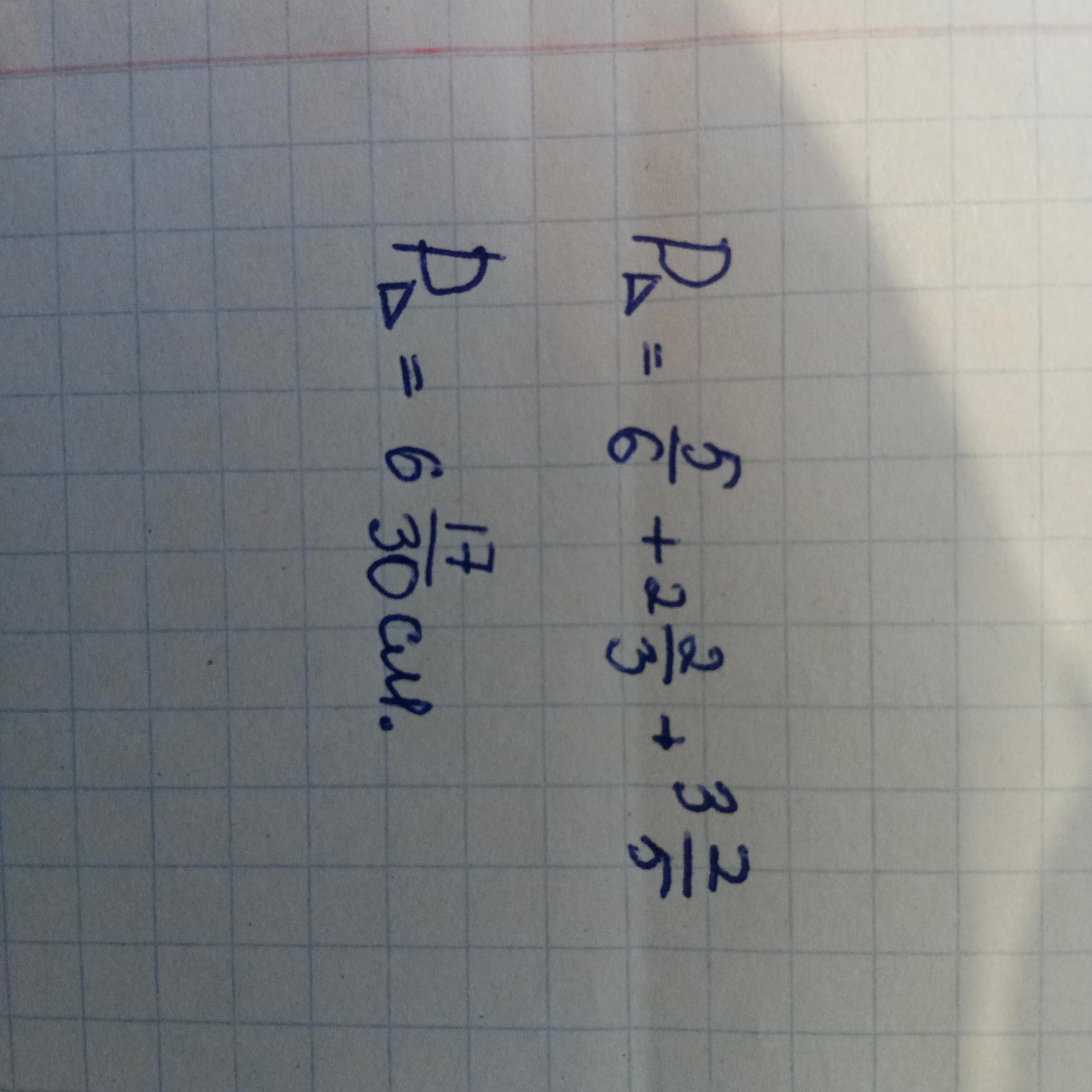 P=5/6см+3 2/5см+ 2 2/3см= 6 9/10см
