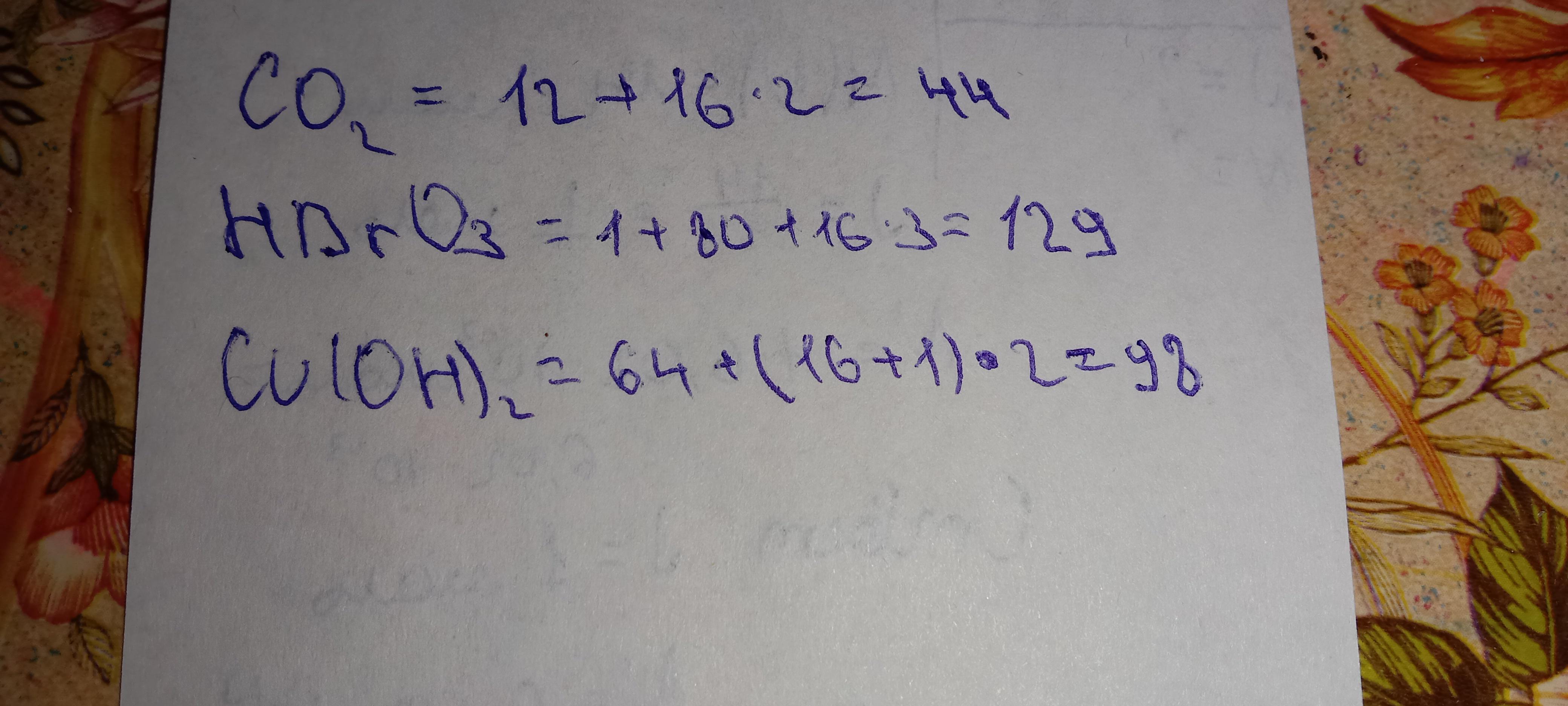 Mr (Cu(OH)2) = 64 + 16 • 2 + 2 = 98