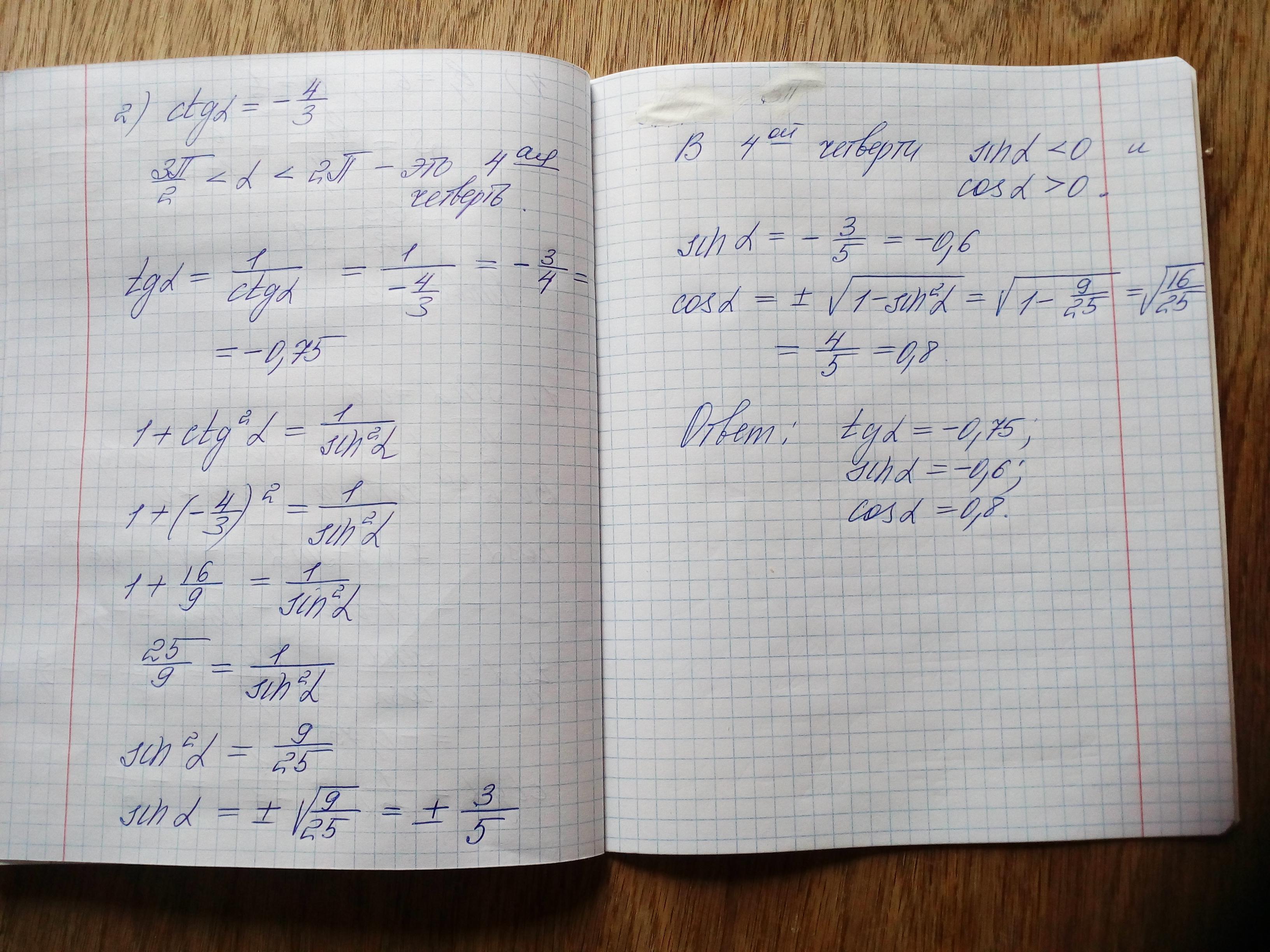 перевір уважно 2 завдання: -4/3 в 3 чверті для сtg не буває, там або + або задача рішення не має