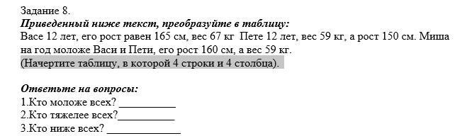 имя | возраст | рост | вес