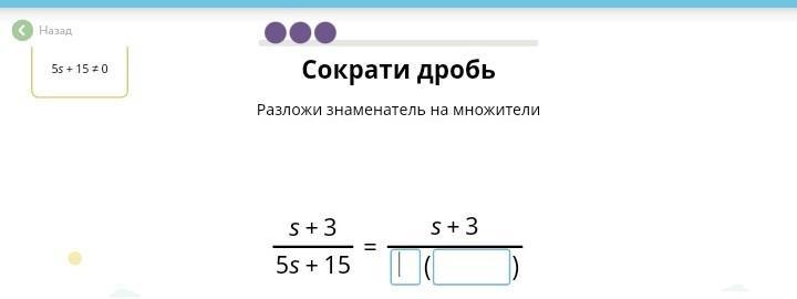 \frac{s + 3}{5s + 15}  =  \frac{s + 3}{5(s + 3)}