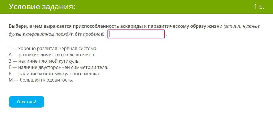 Всего один вопрос по биологии, по желаю можете по профилю перейти там ещё 3 вопроса на 10 баллов