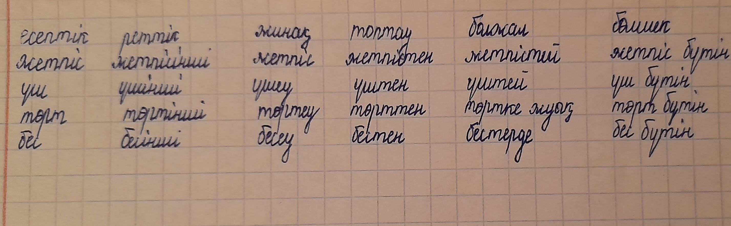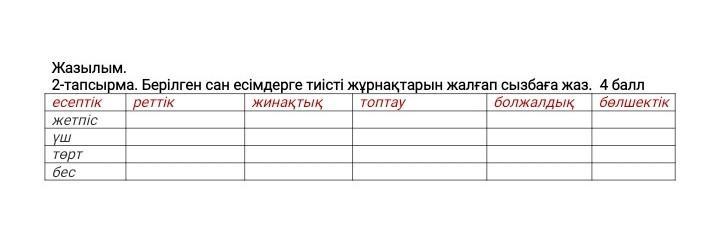 бөлшектік сан есімде мысалы 3,5 деген сияқты сандар болса үш бүтін оннан бес деп жазылуы керек, кестеде тек бүтін сандар болған соң бүтін деп жазылды.