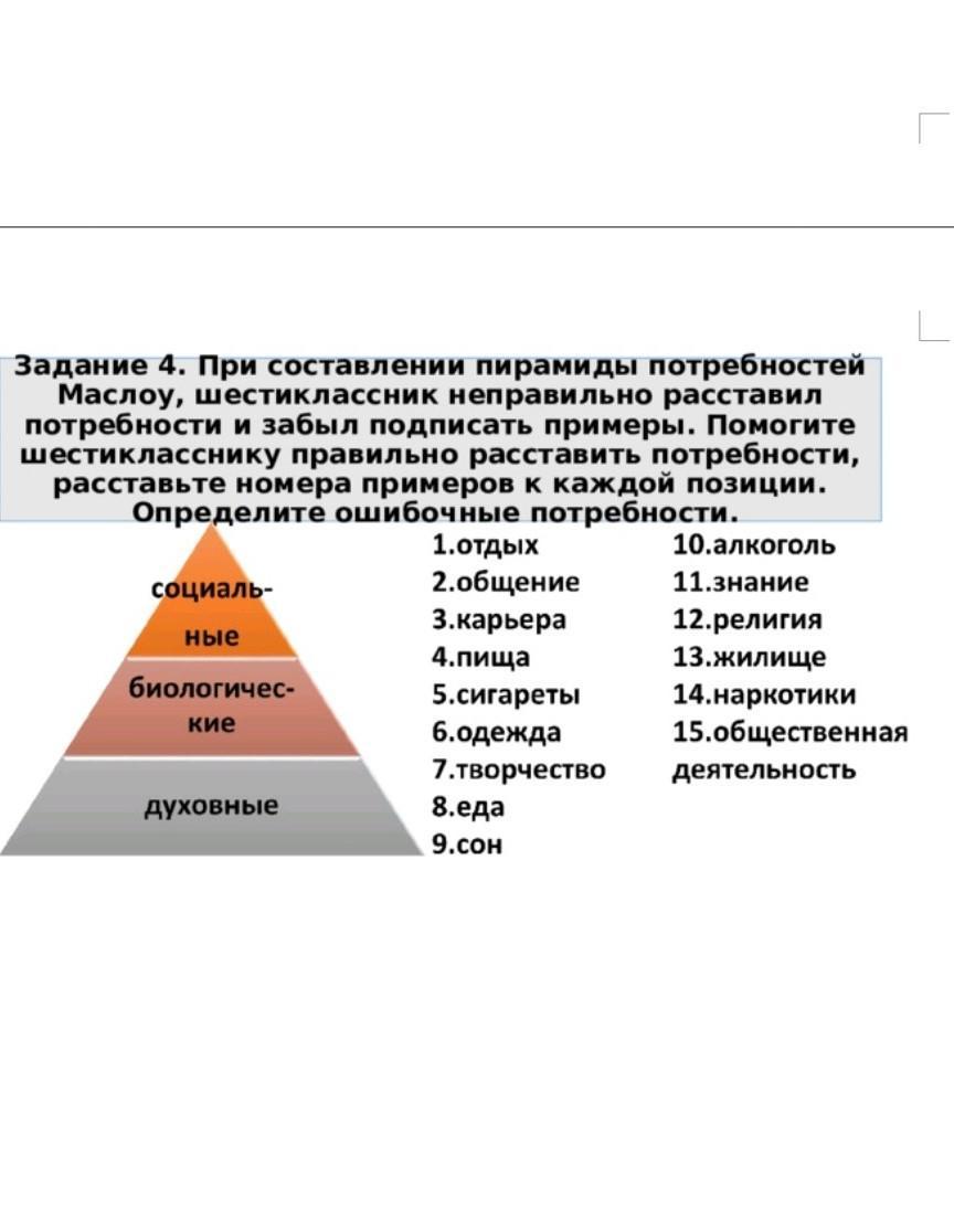Ошибочные: еда,сигареты, наркотики, жилище, общественная деятельность