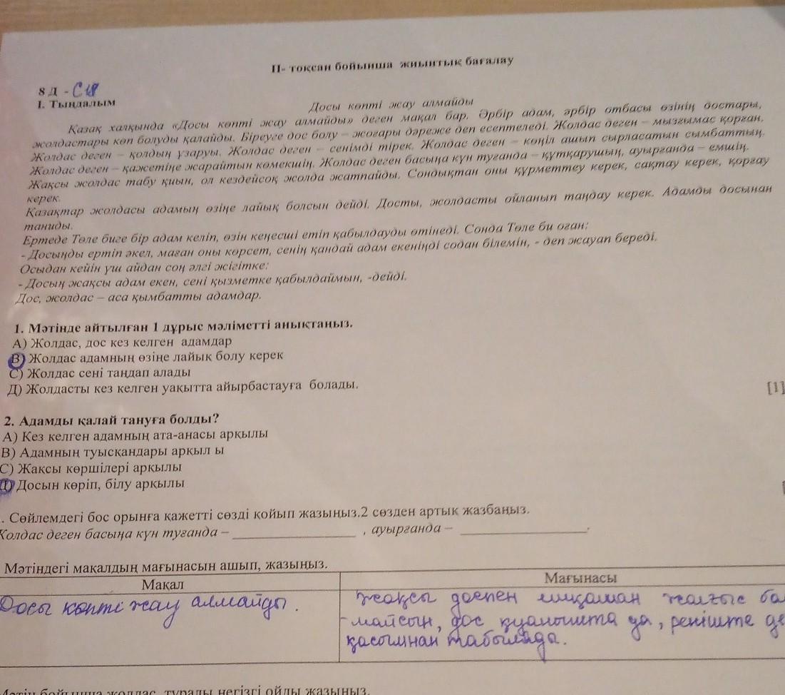 сөйлемдегі бос орынға қажетті сөзді қойып жазыңыз 2 сөзден артық жазбаңыз. жолдас леген басыңа күн туғанда - , ауығанда