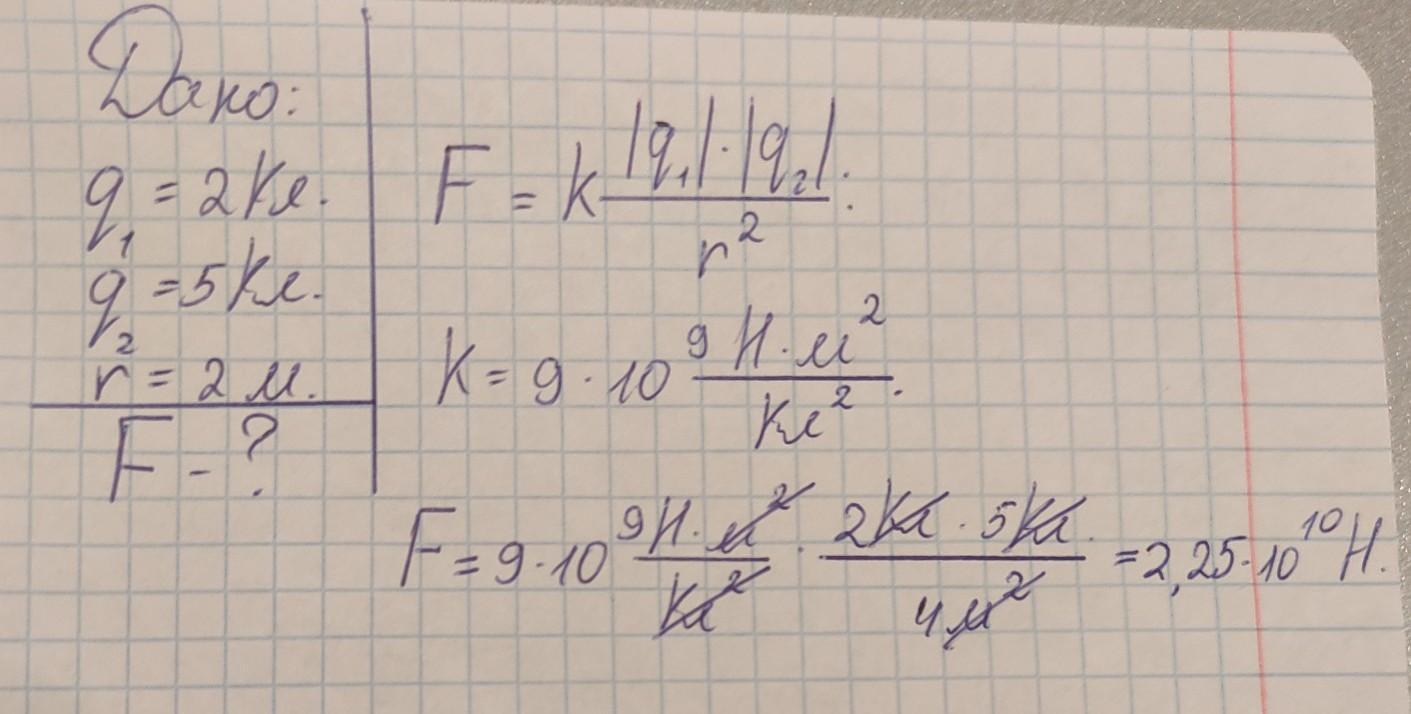 [4] Задания 6. Рассчитайте силу для заряженных шариков одинакового размера с зарядами: 2 Кли 5Kл на расстоянии 2 м.