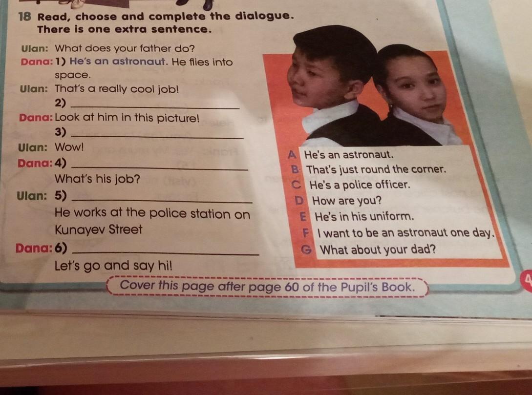 18 Read, choose and complete the dialogue. There is one extra sentence.