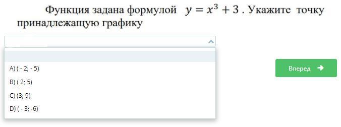 Из этого следует, что только A) - верно. Остальные точки не принадлежат заданному уравнению графика.