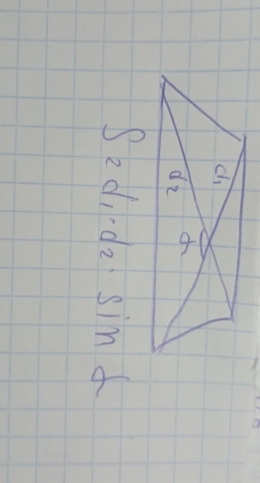 Диагонали четырёхугольника перпендикулярны и равны d1 и d2 соответственно. Найди площадь четырёхугольника.