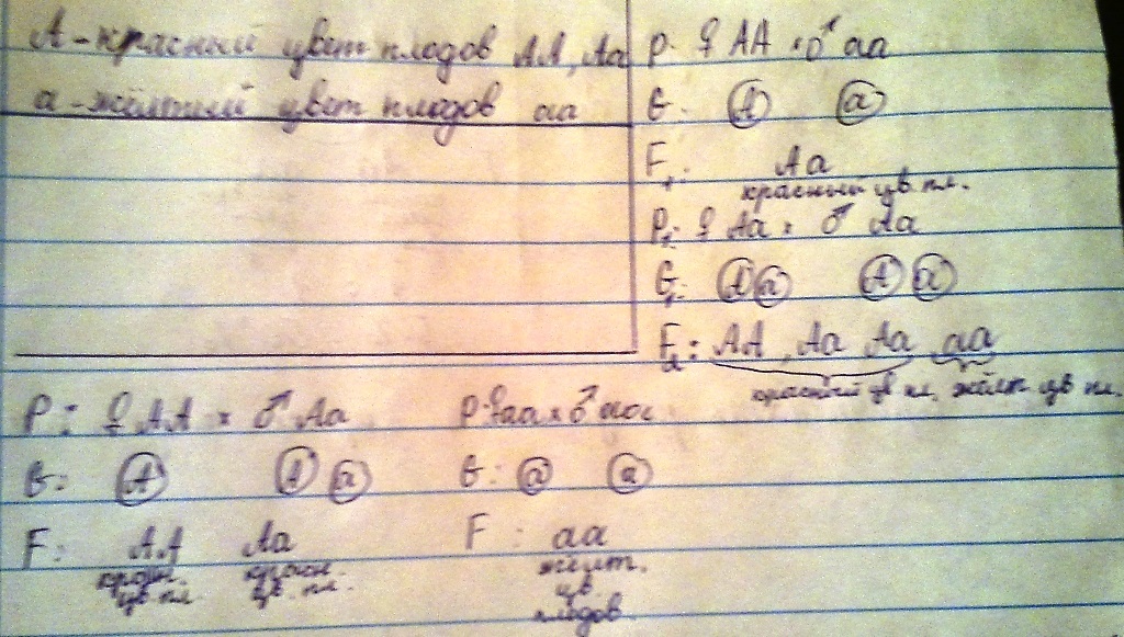 у томатов ген, обусловливающий красный цвет плодов, доминирует над геном желтой окраски их. Какие по цвету плоды окажутся у растений, полученных от скрещивания гомозиготных красноплодных растений с желтлплодными? Какие плоды будут у F2? перечислите все формы, какие могут получиться от скрещивания одного из красноплодных представителей F2 c F1. Что получится от скрещивания между собой желтоплодных представителей F2?