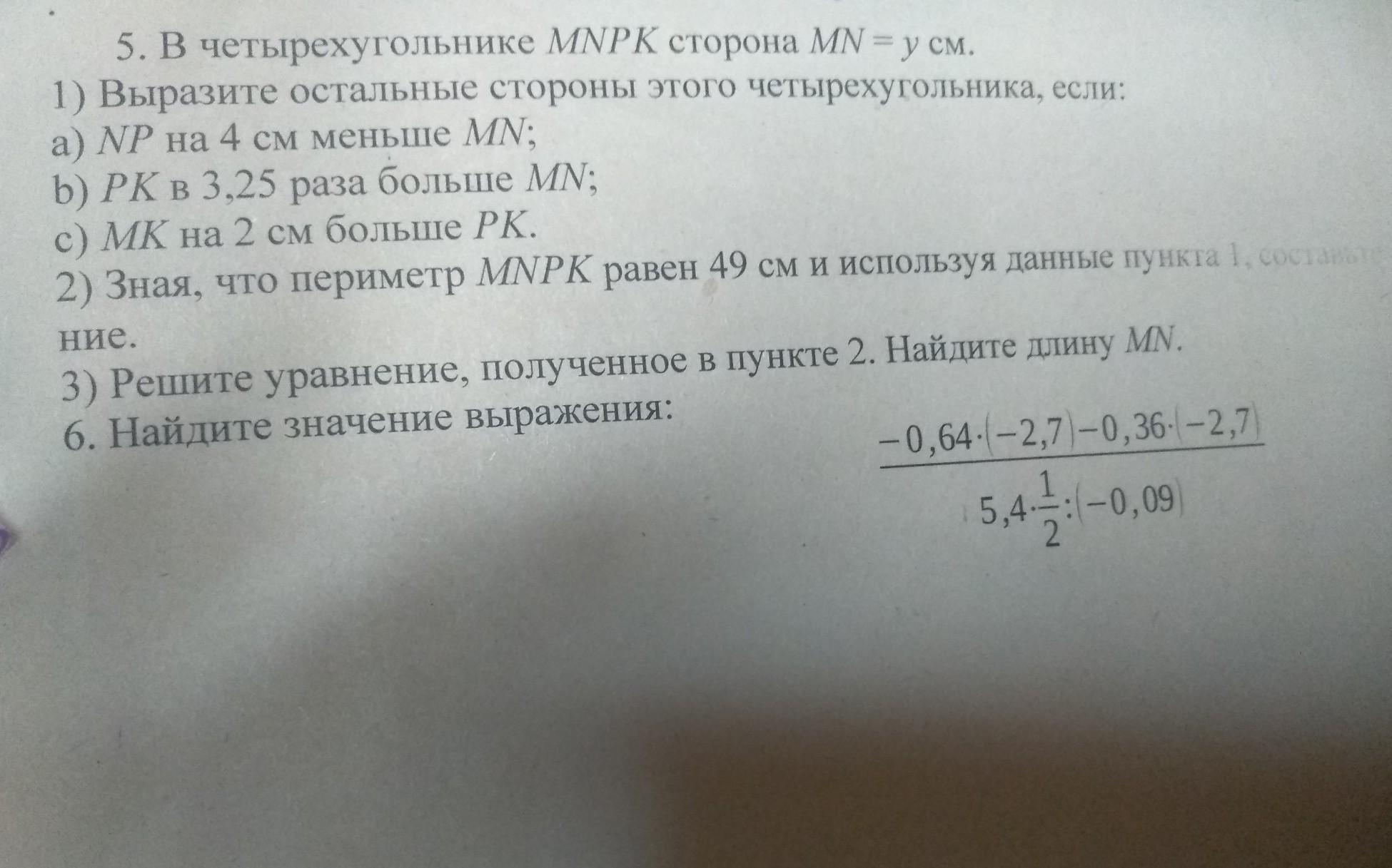 2) P MNPK = MN+NP+PK+KM = y+y+4+3.25y+3.25y+2 = 8.5y+6