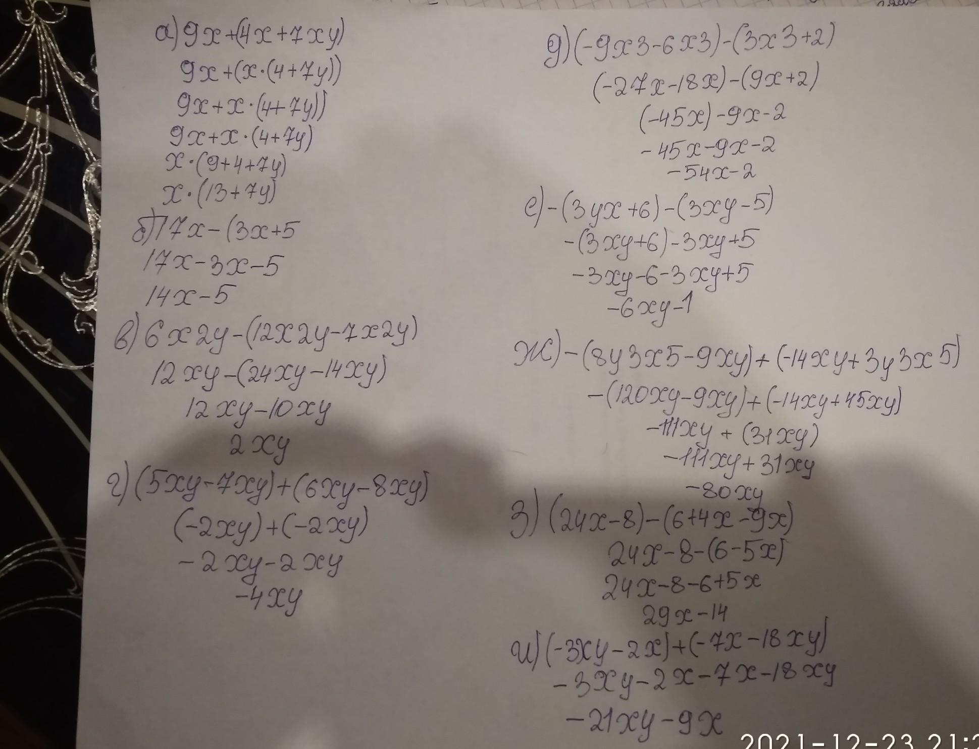 и) ( -3ху – 2х)+( - 7х – 18ху)