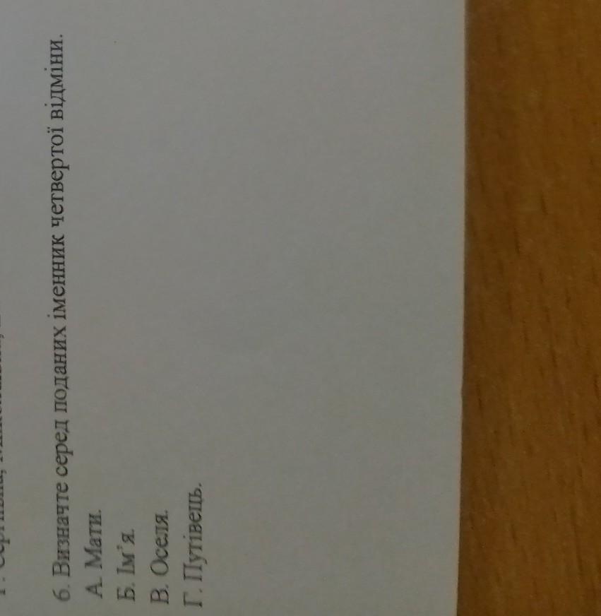6. Виначе серед поданих іменник четвертої відміни. A Мати Б Ім'я B. Oceля Г Путівець