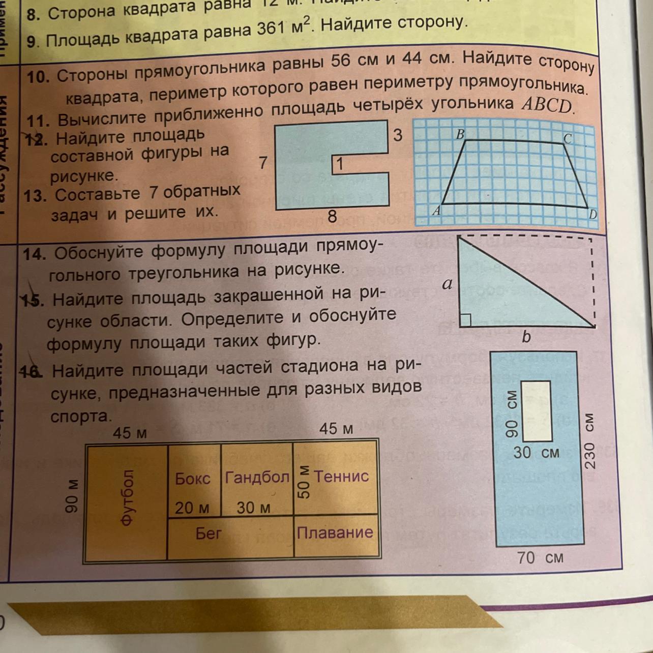 9) корень361 = 19 м сторона