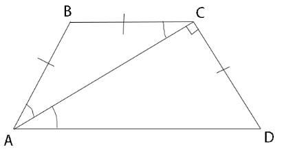 визначити кути рівнобічної трапеції в якій діагональ є бісектрисою гострого кута і перпендикулярна до бічної сторони