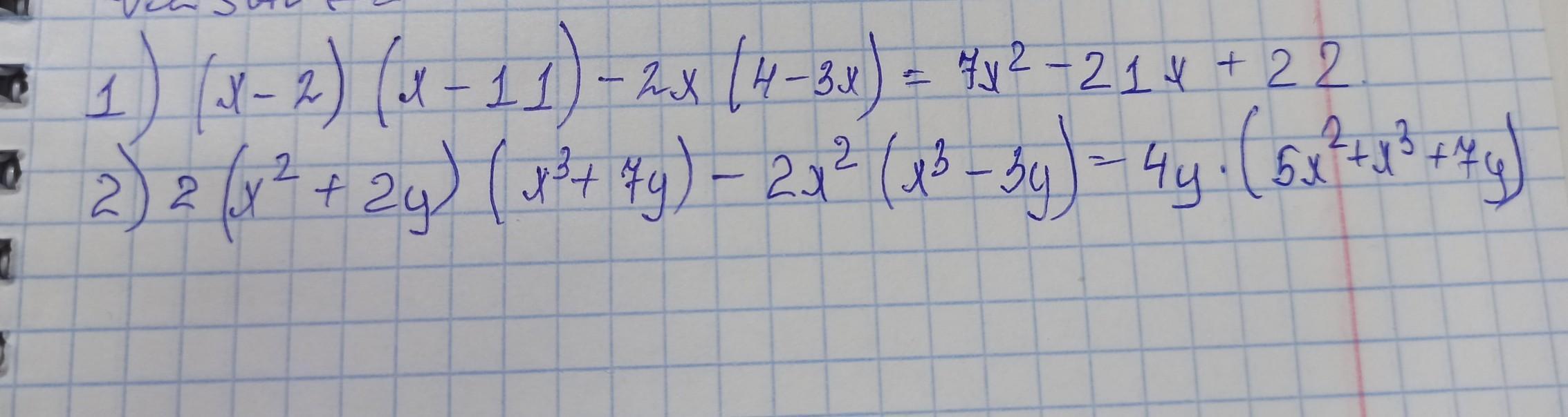 2. 2(x²+2y)(x³+7y)-2x²(x³-3y)