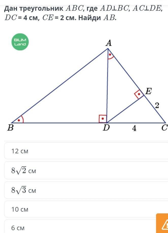 дан прямоугольник ABC, где AD||BC, AC||DE, DC=4 см, CE=2 см. Найди AB