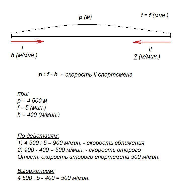 2500:5=500 (метров прошёл 2 спротсмен за 5 минут)