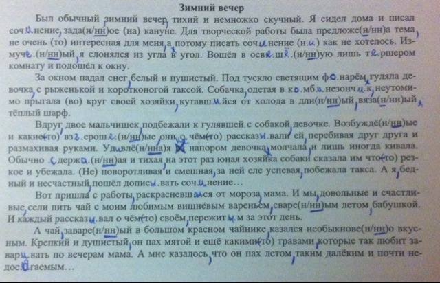 Накануне слитно, после ТЕМА запятую не надо, ОЧЕНЬ-ТО, НИКАК - слитно, тОршером, после ДЕВОЧКА запятую не надо, ВОКРУГ - слитно, кутавшЕйся, между ДЛИННЫМ и ВЯЗАНЫМ зап. не надо, в 1 предл. 3-го абз. запятые не надо, после МОЛЧАЛА запятую не надо, НЕПОВОРОТЛИВАЯ слитно, в 1 предл. 4-го абз. запят. не надо, после ЛЕТОМ зап. не надо.