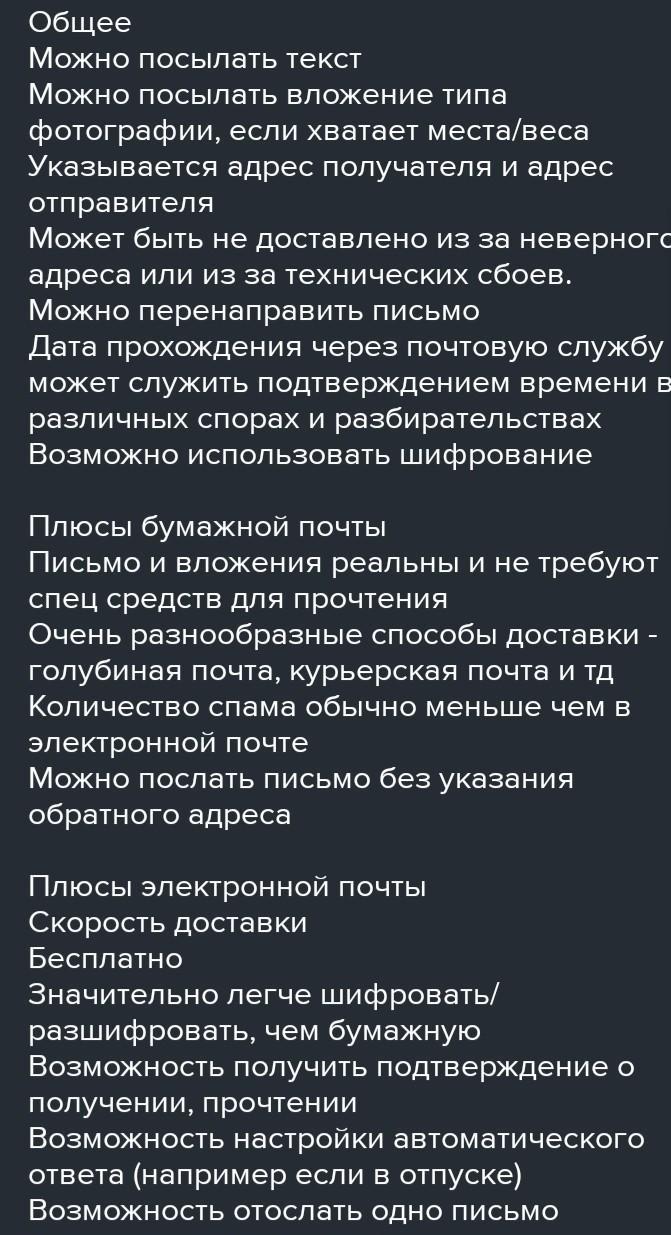 Различное:электронное письмо намного удобнее чем обычное. В нем можно использовать различные эмоджи. Также электронное письмо намного быстрее отправляется. И вообщем почти все в современном мире используют электронные письма.