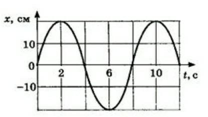 За графіком коливань джерела механічної хвилі визначте період коливань і частоту хвилі. Якою є довжина хвилі, якщо хвиля поширюється зі швидкістю 5 м/с?
