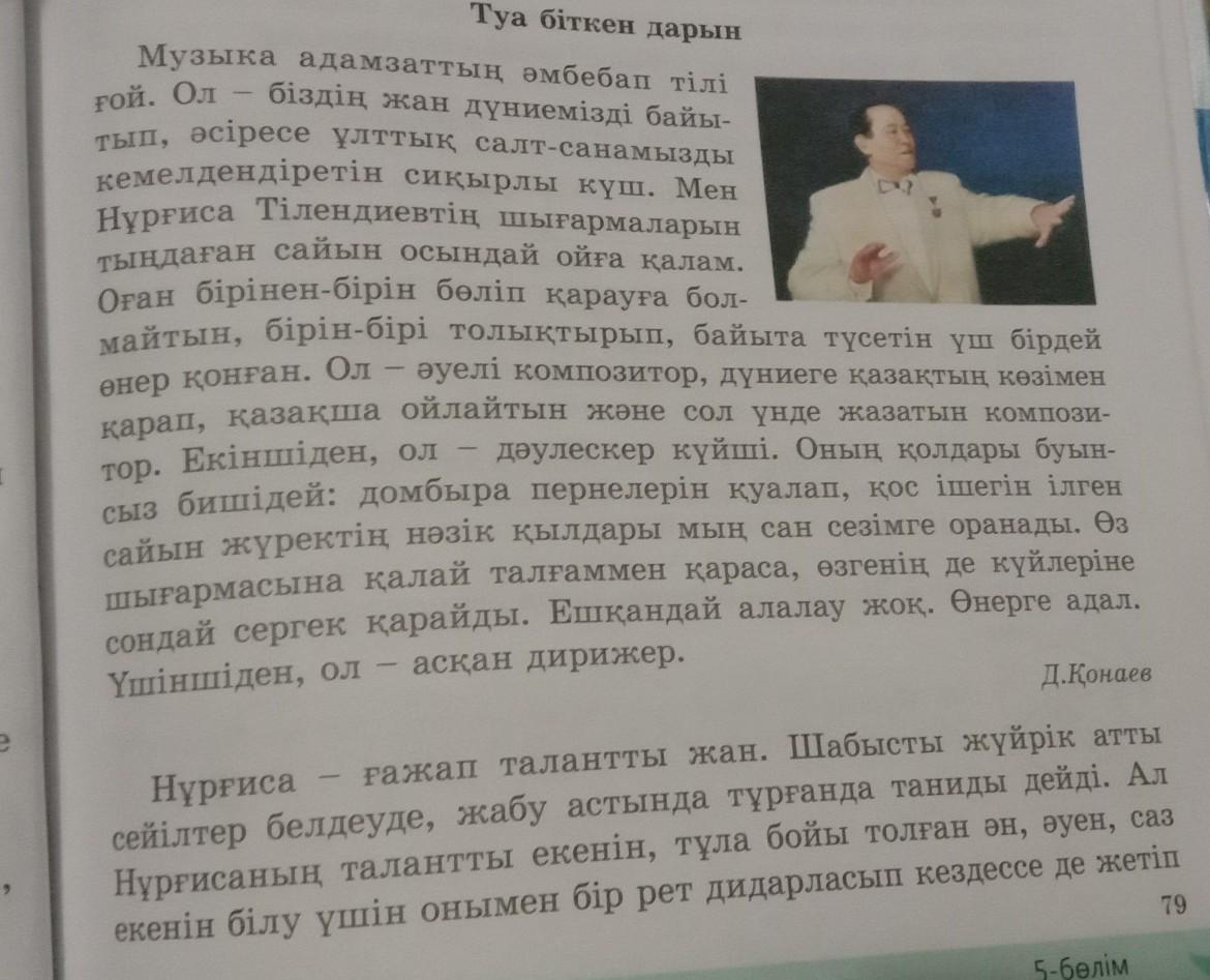Мәтін мазмұны бойынша кестені толтырыңдар. Д.Қонаевтың пікірі Ә.Нұрпейісовтің пікірі Тірек сөздер Негізгі ой Ортақ ой Мәтіннен ауызекі сөйлеу тіліне және көркем әдебиет тіліне тән ерекшеліктерді табыңдар.Помаааааагите 30 бал