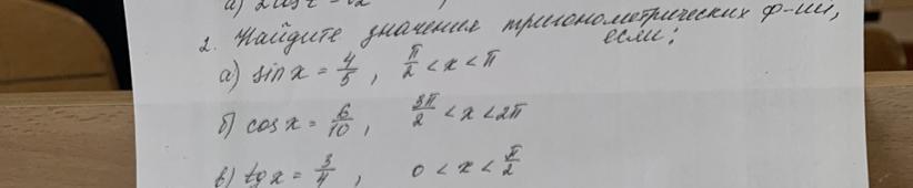 в) tgx=3/4, cosx=√1/(1+tg²x)=√1/(1+9/16)=√(16/25)=4/5=0.8
