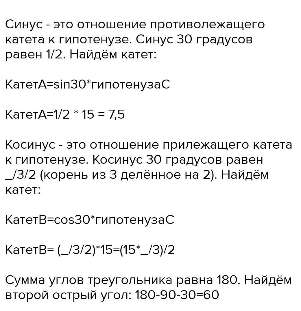 3. Найдите катеты а и b, второй острый угол В прямоугольного треугольника по гипотенузе с=14 см и острому углу a = 30.