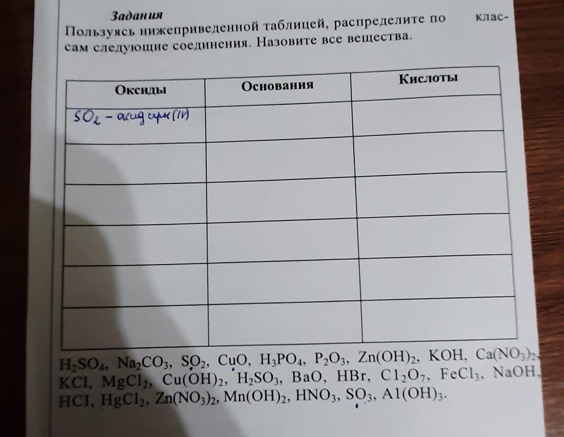 оксиды:S,O2, CUO, P2O3, BAO,CI2O7,SO3, H2SO3, HNO3