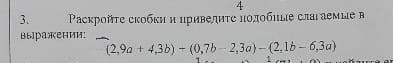(2,9a+4.3b)-(0.7b-2.3a)-(2.1b-6.3a)=2,9a+4.3b-0.7b+2.3a-2.1b+6.3a=