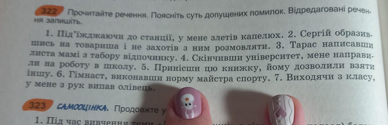 322 Прочитайте речення. Поясніть суть допущених помилок. Відредаговані речень ня запишіть.