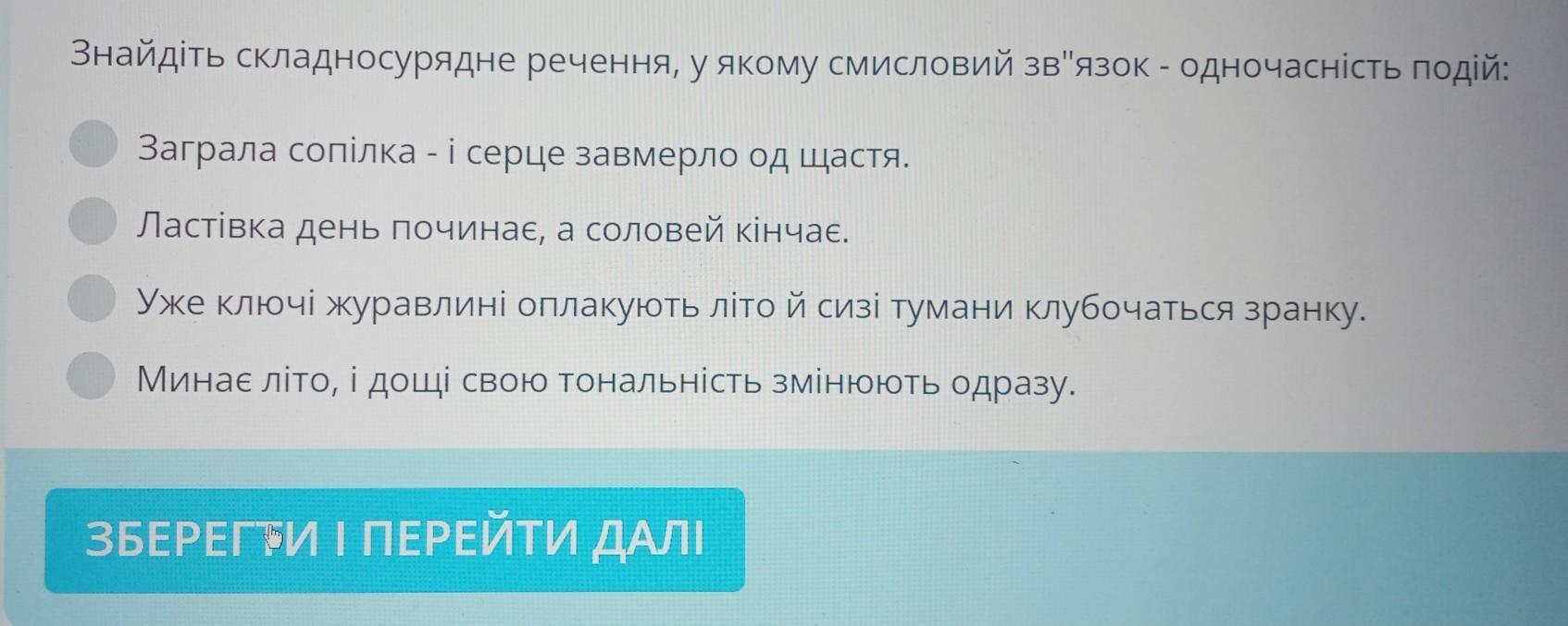 Уже ключі журавлині оплакують літо, й сизі тумани клубочаться зранку. (Тут бачимо дві події, що відбуваються одночасно, незалежно одна від одної, отже, це правильних варіант)