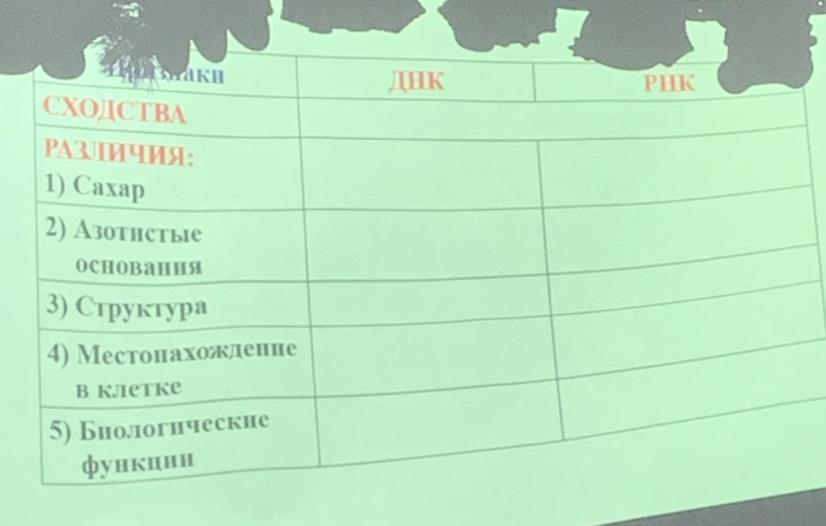 Биологические функции: ДНК - хранение, передача и реализация наследственной информации; РНК - иРНК( перенос информации о структуре белка от ДНК к месту синтеза), тРНК( транспорт аминокислот на рибосомы), рРНК( синтез белка)