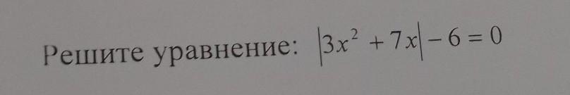 Решите уравнение: |3x² + 7x| - 6 = 0
