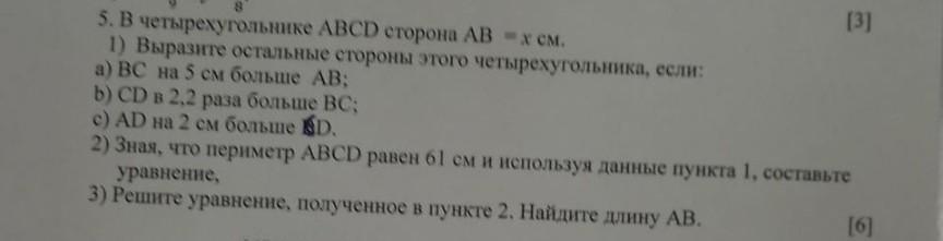 5. В четырехугольнике ABCD сторона АВ = x см.