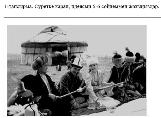 Мен ойлаймын осы суретте біздің тату тәтті ұлттарымыз жиналып отыр. Олар біздің ұлттық аспаппен барлығы ойнап отыр. Ол өте әдемі сурет. Өйткені мен өз ұлттарымды тату тәтті, күліп, домбырада ойнап отырғанын көрсем қатты қуанамын! Мен қазақ болып жаралғаныма қатты қуанамым және мақтан етемін!