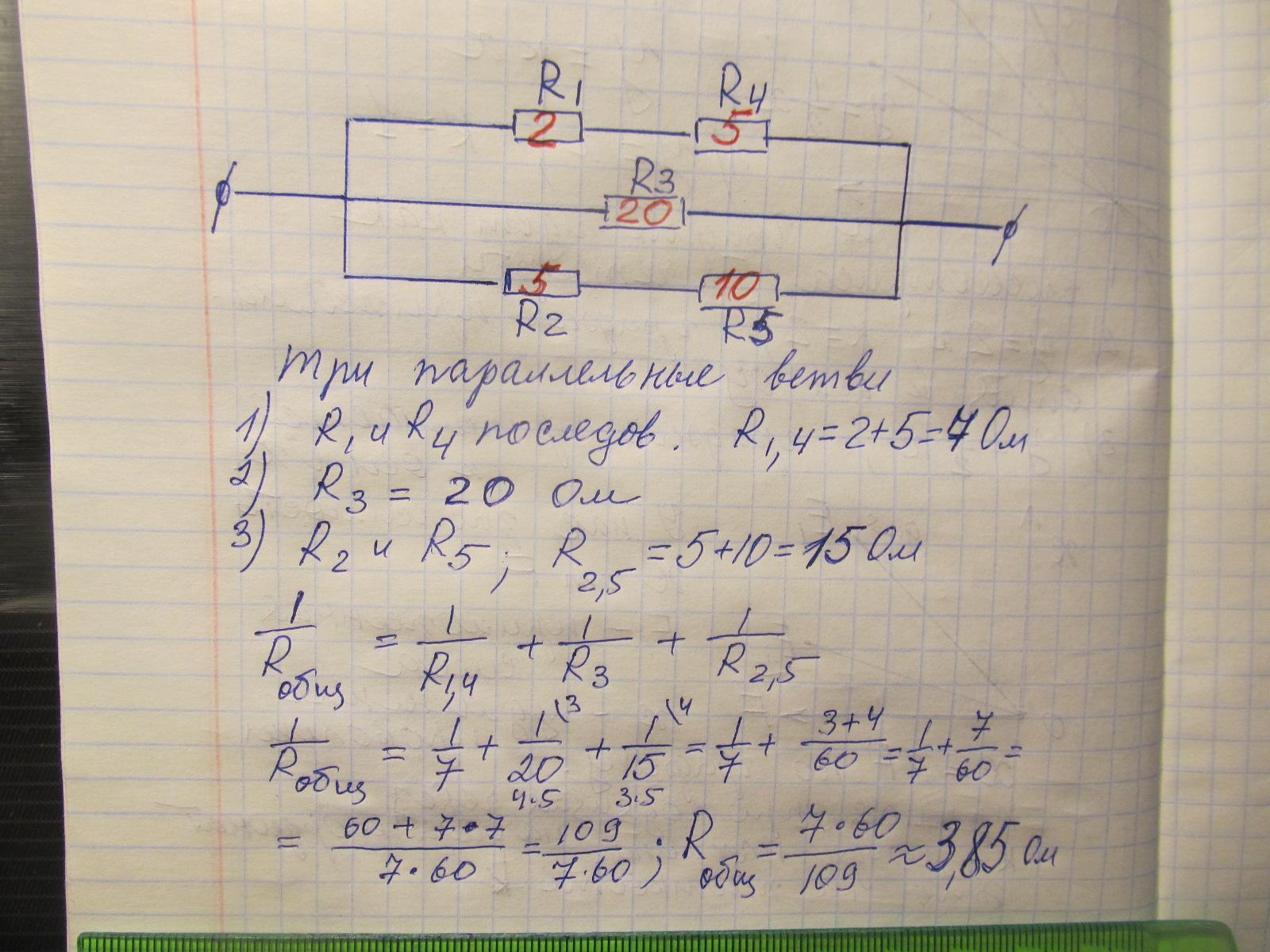 Сопротивление ветвей 7, 20 и 15 Ом.