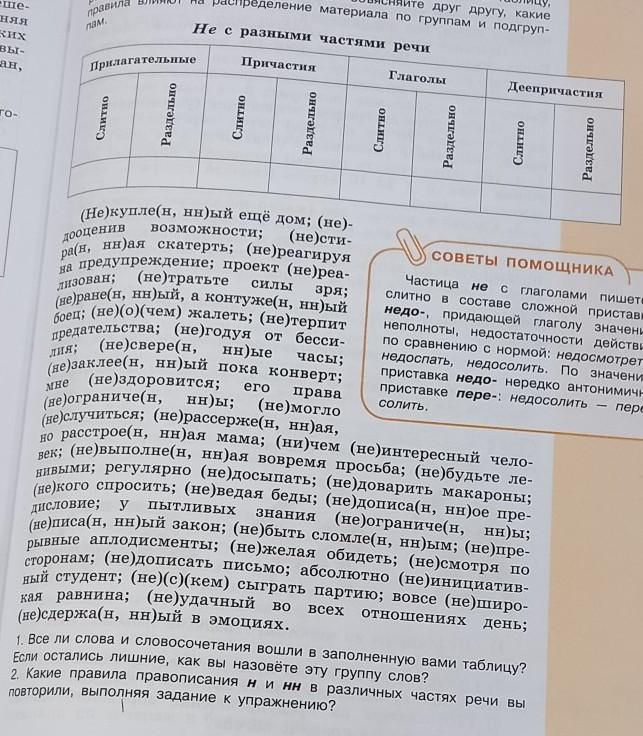 некупленный ещё дом; недооценив возможности; не стираная скатерть; не реагируя на предупреждение; проект не реализован; не тратьте силы зря; не раненый; а контуженый боец; не о чем жалеть;не терпит предательства; негодуя от бессилия; несвереные часы; не заклеенны пока конверт; мне нездоровится; его права неограниченны; не могло не случиться; не рассержаная мама; ничем неинтересный человек;невыполненая вовремя просьба; не будьте ленивыми; регулярно не досыпать; не доверить макароны;некого спросить. прости,дальше не могу. надеюсь правильно
