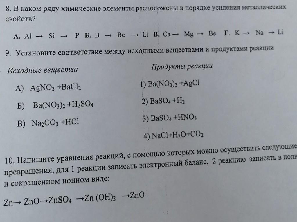 Напишите уравнение реакции с помощью которых можно осуществить следующие превращения для 1 реакции записать электронный баланс, 2 реакцию записать в полном и сокращённом виде: