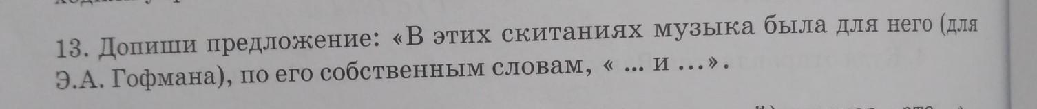 13. Допиши предложение: «В этих скитаниях музыка была для него (для Э.А. Гофмана), по его собственным словам, «... и...».