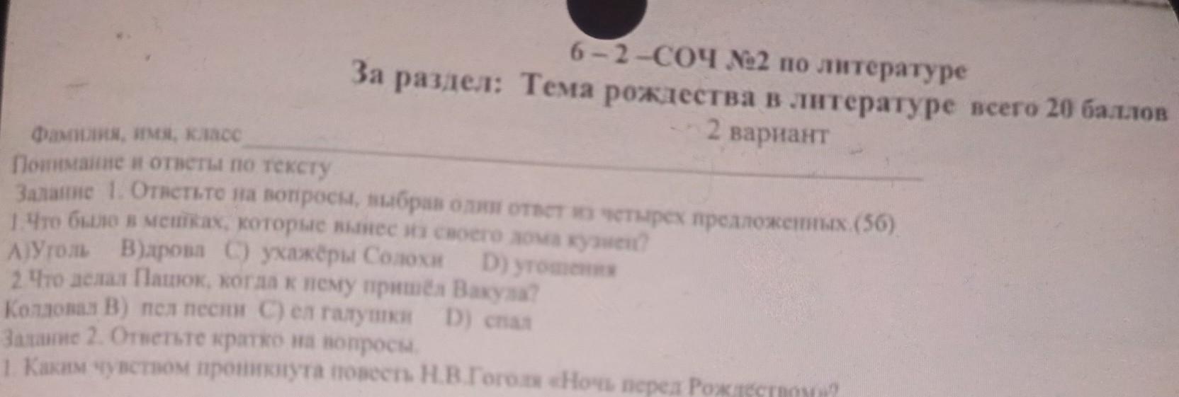 1)что было в мешках которые вынес из своего дома кузнец? а)уголь в)дрова с)ухажер солохи d)угощение