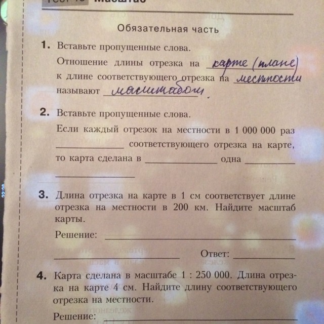 2)Если каждый отрезок на местности в 1000000 раз БОЛЬШЕ соответствующего отрезка на карте,то карта сделана МАСШТАБЕ одна миллионная