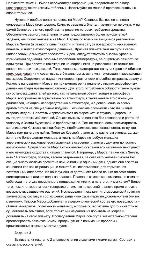 Прочитайте текст. Выбирая необходимую информацию, представьте ее в виде несплошного текста (схемы/ таблицы). Используйте не менее 5 профессиональных слов и терминов.