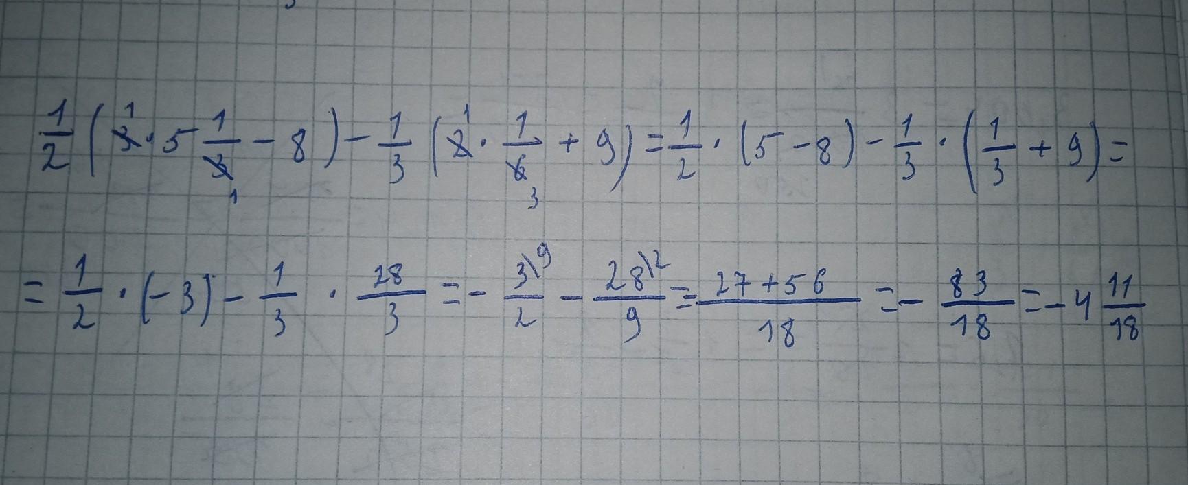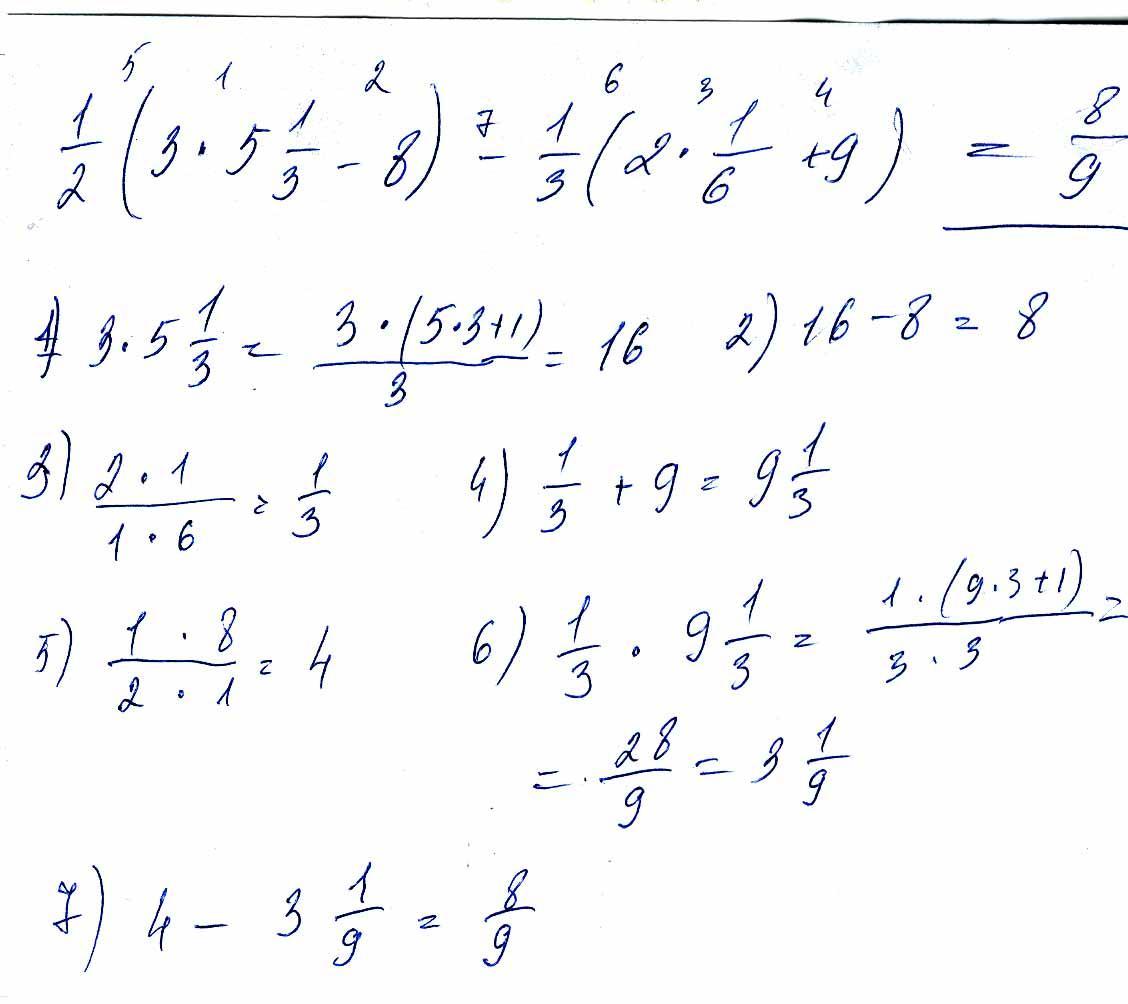 1/2(3*5 1/3-8)- 1/3(2*1/6+9) = 8/9