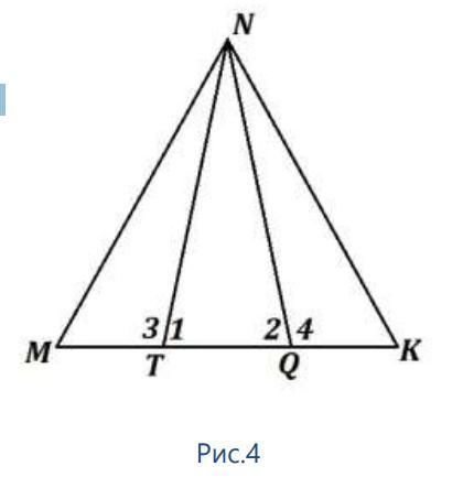 ∠2=∠1, т.к. у равнобедренного ΔTNQ углы при основании равны.