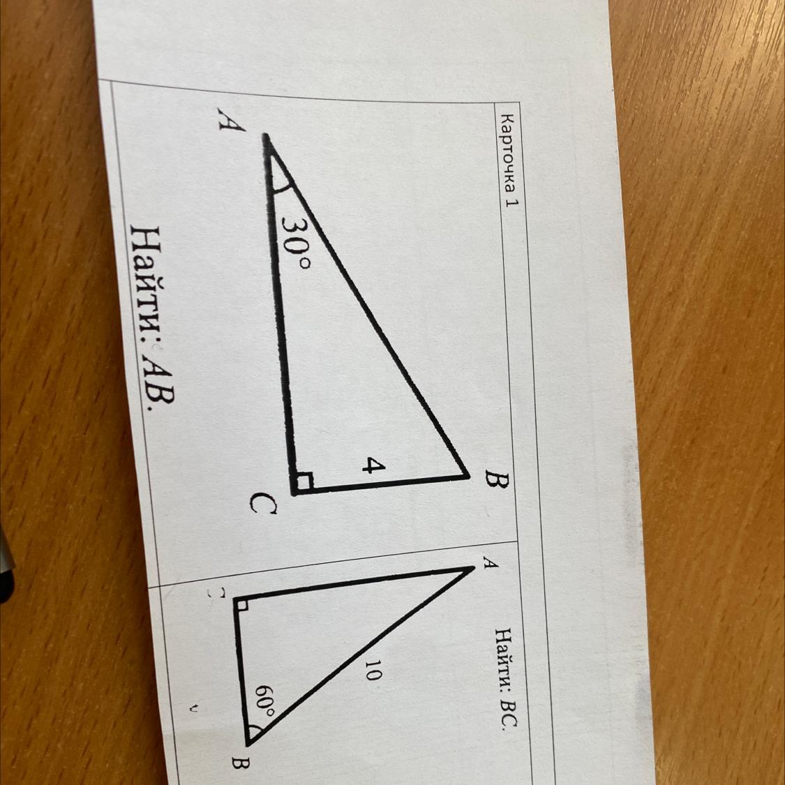 Катет (ВС), лежащий напротив угла, равного 30°, равен половине гипотенузы (АВ).
