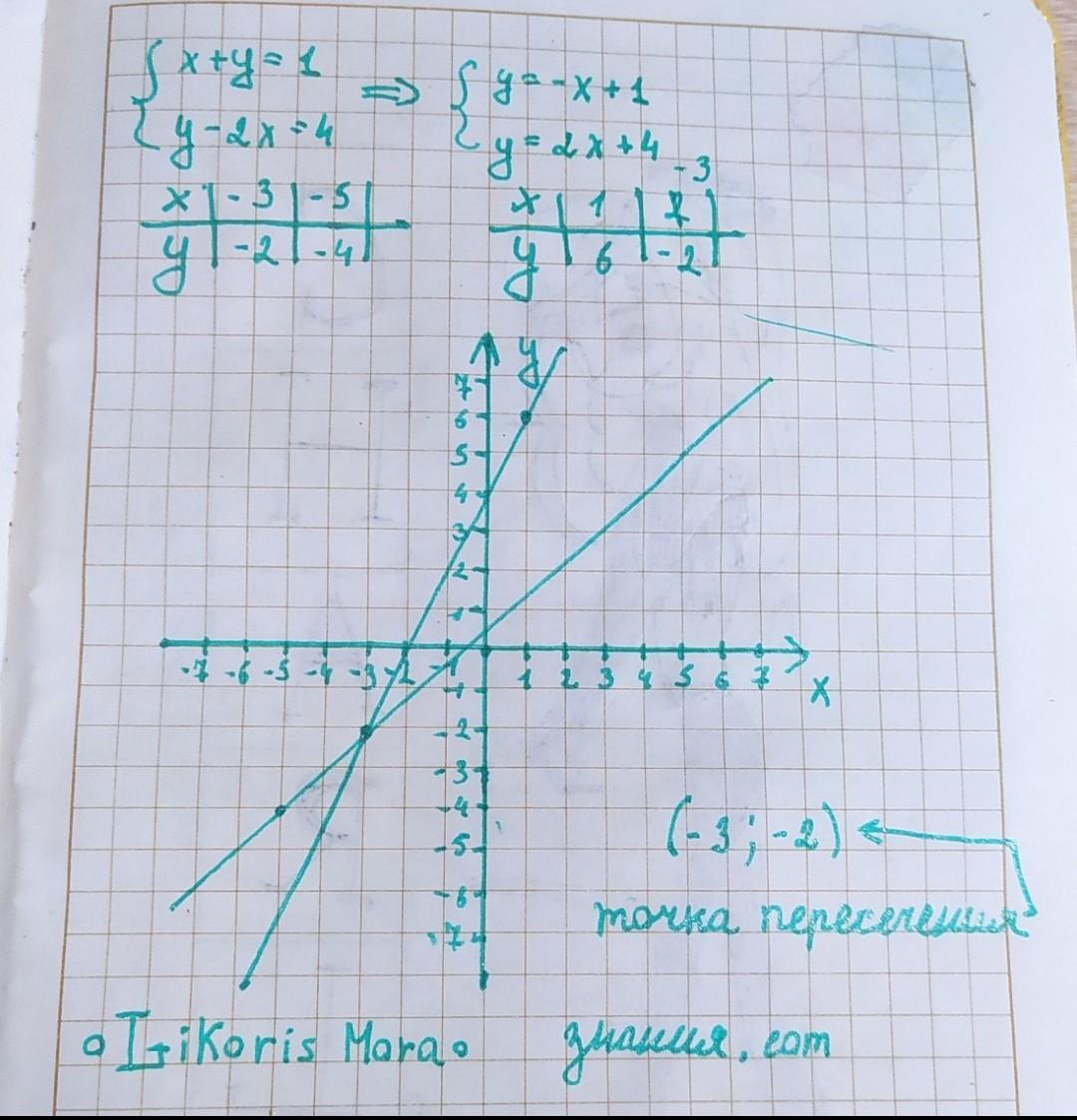 Решите графическим медотом систему уравнения х+у=1 у-2х=4
