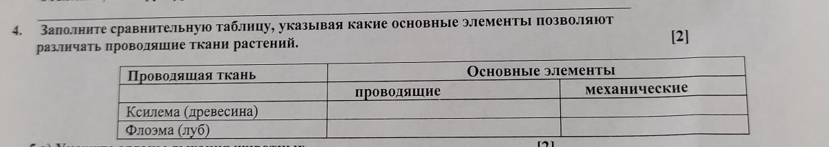 срочно!!! дам 30 баллов 4. Заполните сравнительную таблицу, указывая какие основные элементы позволяют различать проводящие ткани растений. [2] с