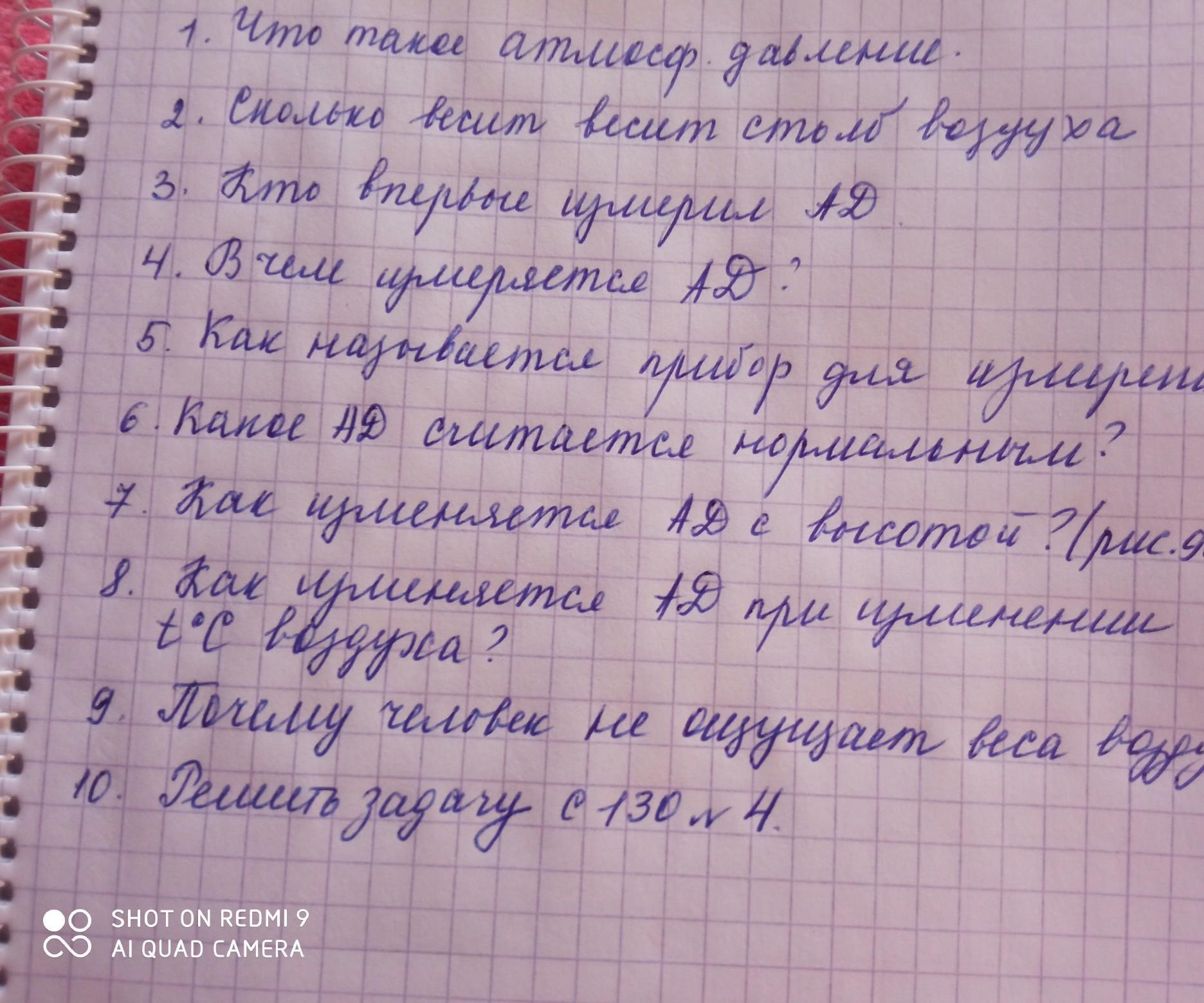 9)Человек не ощущает атмосферного давления, так как оно уравновешивается его внутренним давлением.