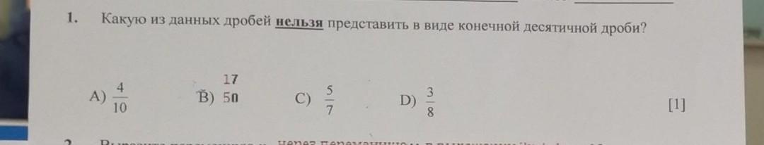 5/7 нельзя представить в виде конечной десятичной дробе Отв:С